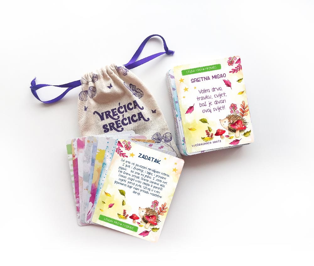 Svaka skupina opremljena je materijalima Vježbaonice sreće: Kartice Kluba superjunaka; SUPER JA kartice; SOS KARTICE (STANI − ODMAH − SAD i izvuci karticu, Što napraviti kada te preplavi neugodna emocija?); VREĆICA SREĆICA – kartice namijenjene razvoju samoregulacije, samopouzdanja, samosvijesti, empatije, pozitivnog životnog stava.